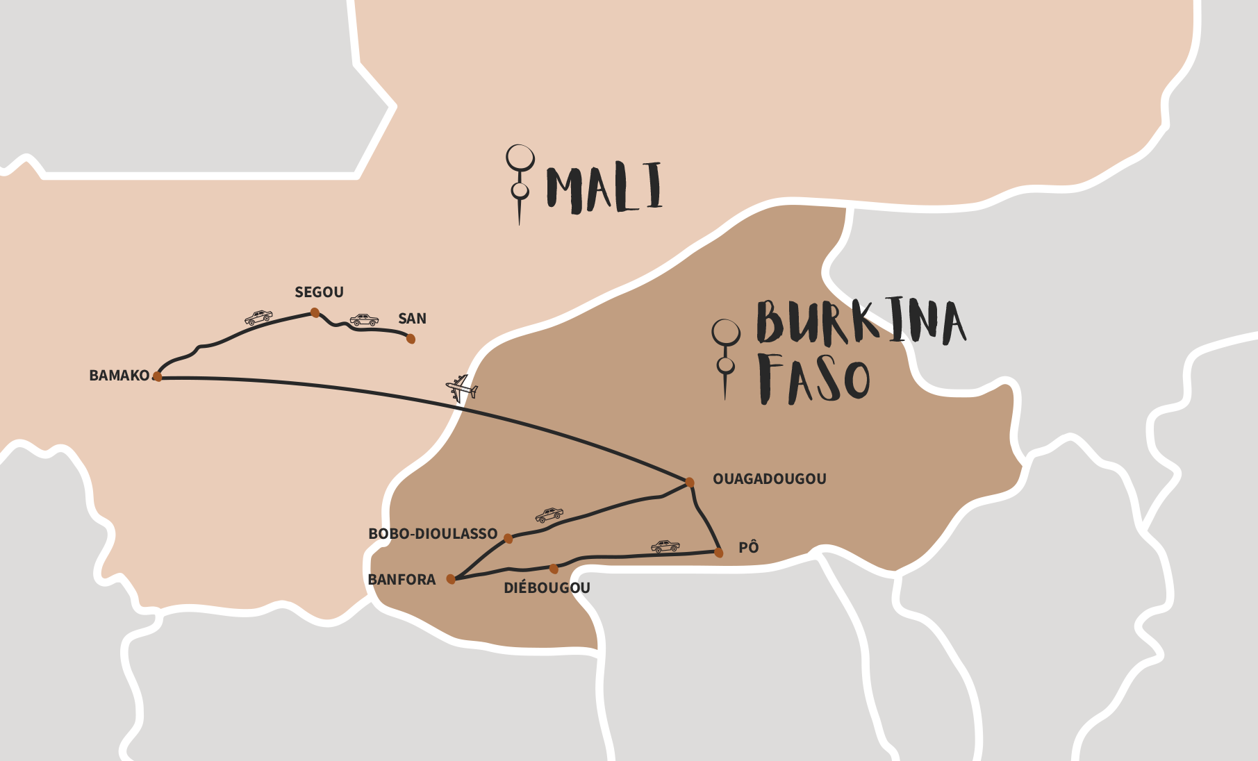 Sim, podes fazer as duas, podes optar apenas pela Extensão ao Mali e claro só pela viagem base, a do Burkina.